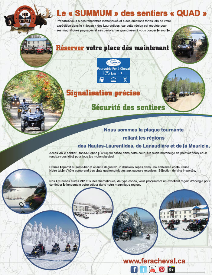 Venez découvrir le « SUMMUM » des sentiers « QUAD » et planifier vos prochaines randonnées quad et motoneige dans la belle région des Laurentides.